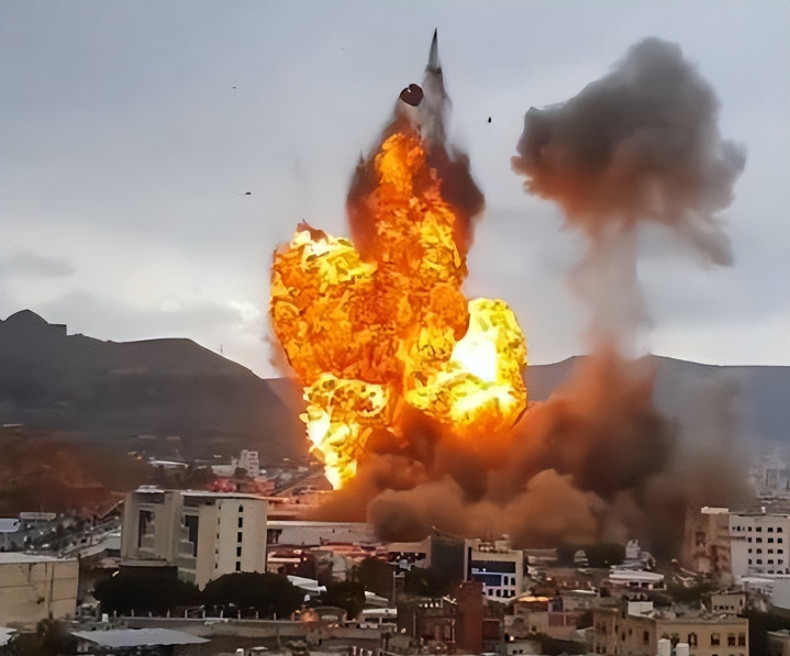 当战机抵达萨那上空时,夜幕已经降临。防空警报声划破夜空,但没等胡塞武装的防空系统做出反应,炸弹就已经落下。总统府的院墙被炸开一个大洞,主楼的顶部被掀掉了一半。发电厂的储油罐被击中后燃起熊熊大火,火光映红了半边天。燃料基地的爆炸更是惊天动地,冲击波把附近几公里的窗户都震碎了。